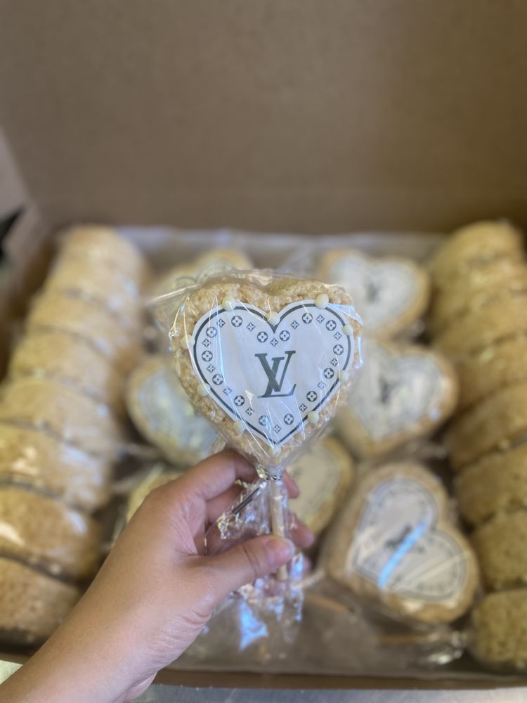 Brown butter, rice, crispy bottom, scratch made caramel center, topped with milk and dark chocolate blend, finished with gold sprinkles.While you eat this, your taste buds will feel like a million bucks!